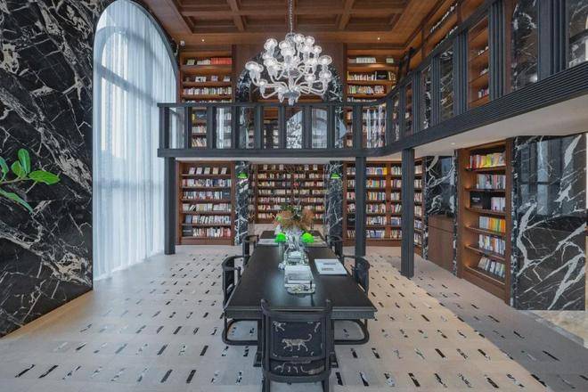 月咏主题馆以艺术沙龙为主题,12米挑高空间内设有人文艺术厅、女王厅和日月图书馆;日曜主题馆是私享会客厅,配备行政酒廊、红酒雪茄吧;绿松主题馆专注音乐花园,设有声音疗愈空间和独立琴房;蓝调主题馆则是韵动健身空间,对标五星级酒店健身会所标准。