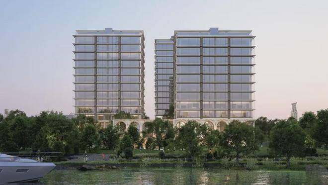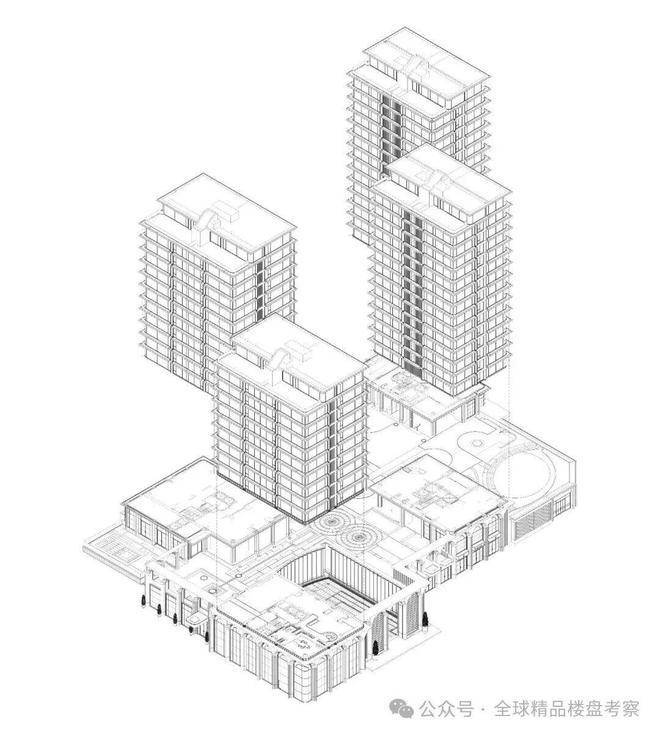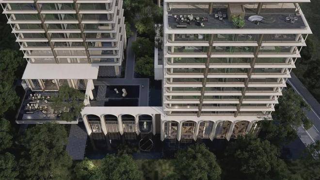 建筑设计由九米设计操刀,采用意式托斯卡纳风格,融合拱门、罗马立柱等元素,外立面运用玻璃、铝板等材质,营造悬浮感与雕塑感。首层抬高约12米,部分户型享270°环幕运河视野。打造意式托斯卡纳园林,含空中花园、下沉卡座、图书馆等,兼具艺术感与功能性。