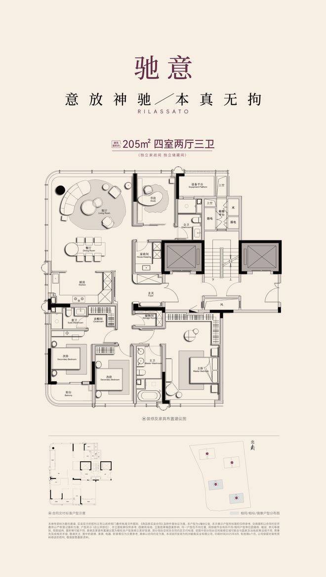 项目规划4幢12-17层小高层,主打205㎡(层高3.15米)、245㎡(层高3.3米)、300-380㎡顶跃(首层3.6米)三大奢阔户型。