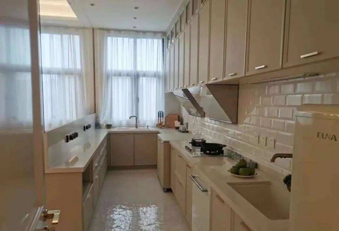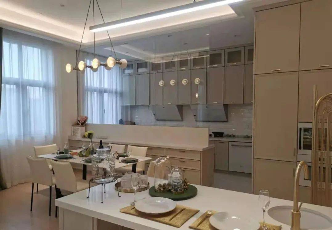 中厨与餐厅之间设计了,全透明无框玻璃隔断,保留了大空间的通透,也杜绝了中式油烟的侵扰。