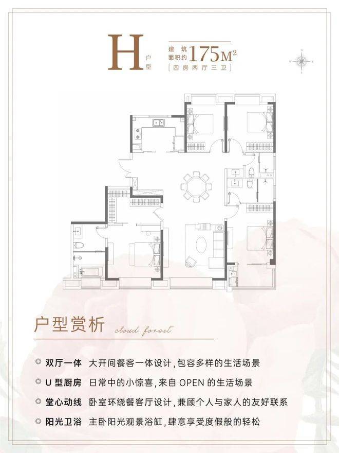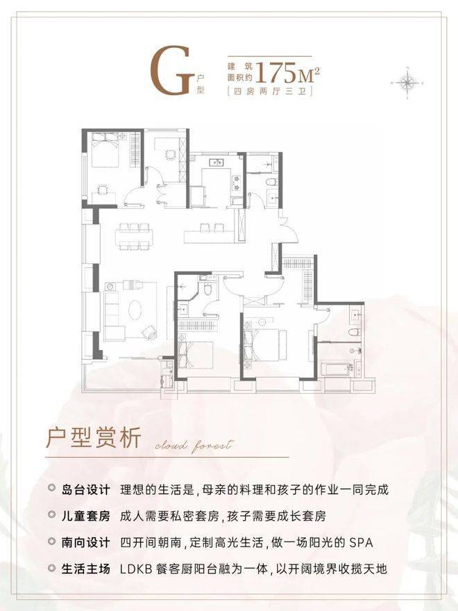 建面约175㎡4房3卫,几乎是上海改善的终点户型。