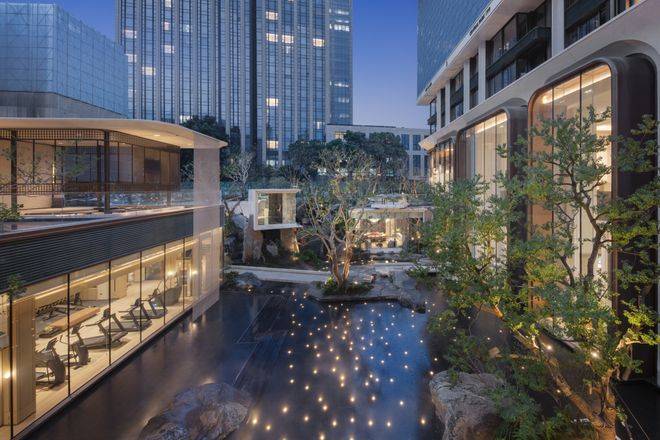 同时从豫园中汲取灵感,利用最高约15米的地形高差变化打造当代立体山水园林。乌桕树、百年罗汉松、红枫、铁冬青…各类植被错层分布,各组团风格大不相同,不出社区,就能看遍上海的一年四季。