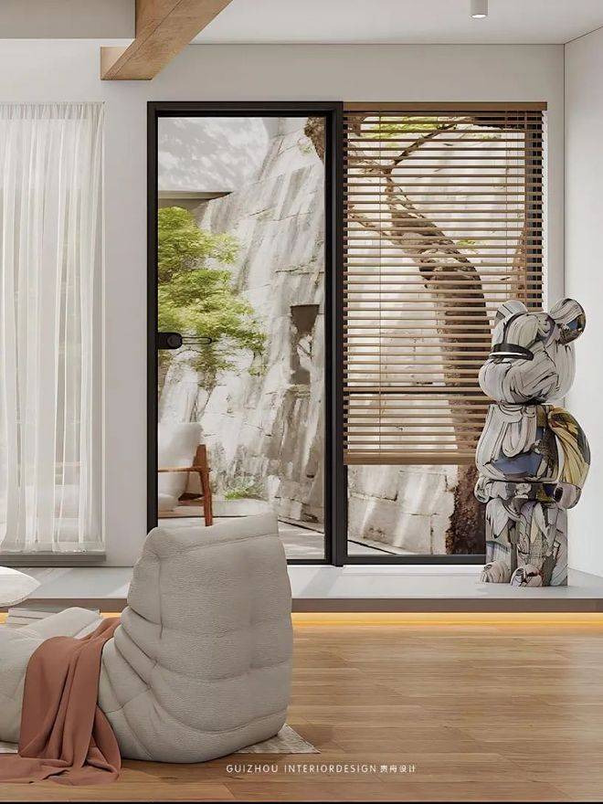 即使在室内,也能通过落地窗欣赏到庭院里面的四季变换云卷云舒,小中见大!