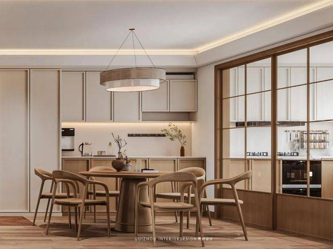 当代生活需求与传统美学的融合,在餐厨区域体现得尤为精妙。