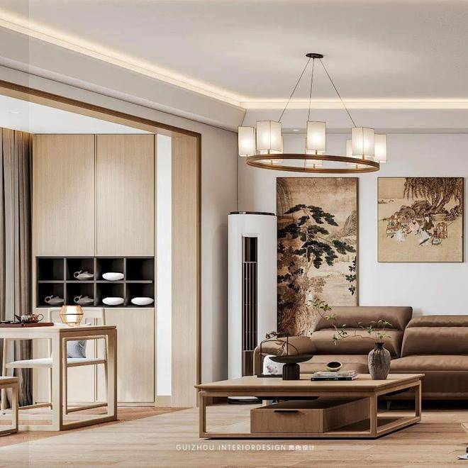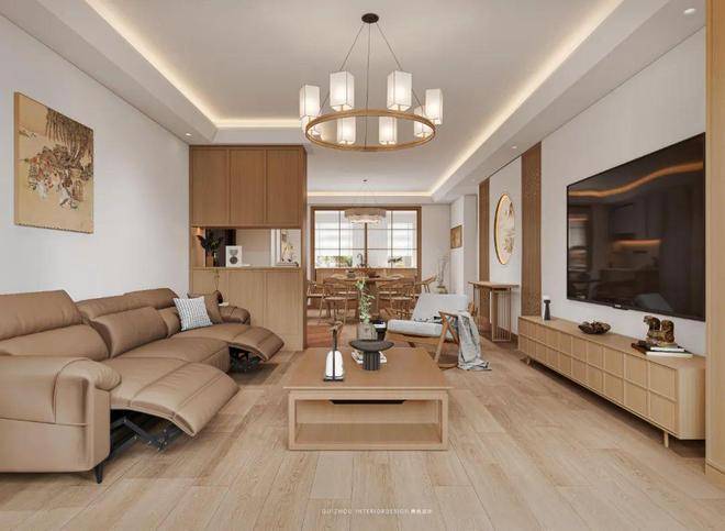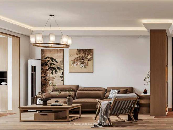 客厅部分色调和谐统一,营造出一种温润古朴的氛围。