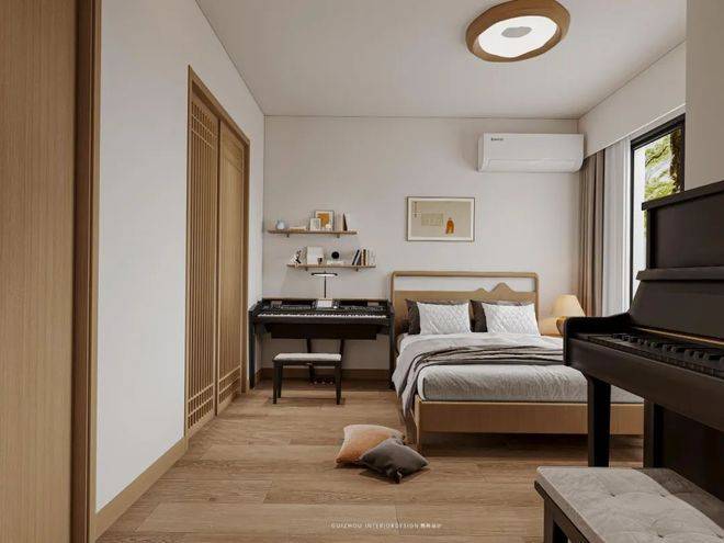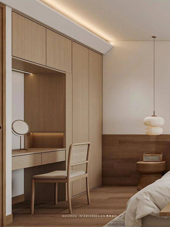 乍看之下,卧室整体还有一股淡淡的日式风质感,这也是设计师考虑到女主人在日本留学的经历设计的小巧思。