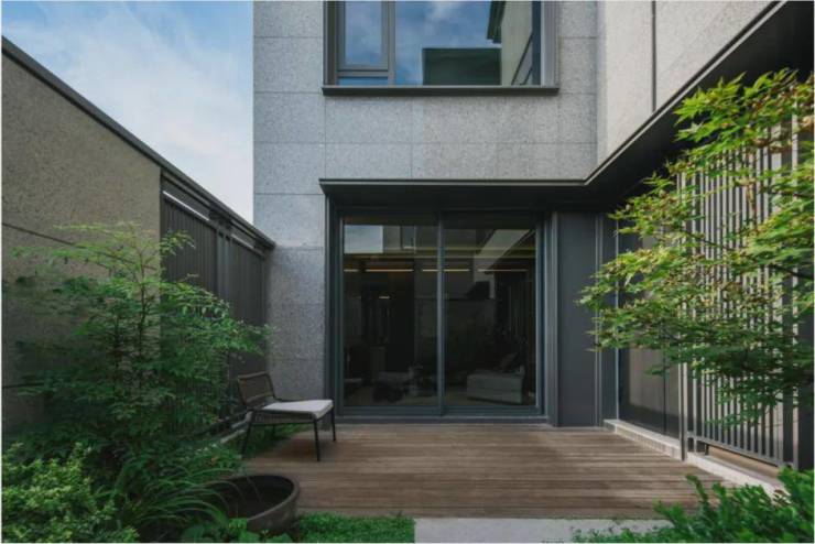 灰白对比的主色调,突出典雅的调性。保留宋式传统元素,并通过大面积玻璃、涂料、首二层石材+铝线条等简洁而现代手法,匹配现代品质生活。