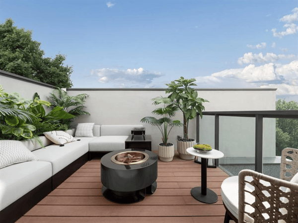 以建面约180㎡户型为例,首层庭院式入户,不仅营造自然沉浸的归家仪式感,也让四季风光成为客厅窗外的常客。平日里坐于院中,闲看庭间花开花落,漫随天外云卷云舒,品味城市里难得的自在时光;周末邀约三五好友,无论是小型的长桌宴会,亦或是散漫轻松的BBQ,对着美景开怀畅饮,笑谈流年。