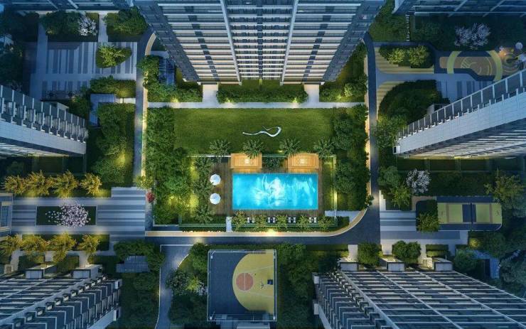 园林中央,更拥有度假风游泳池。