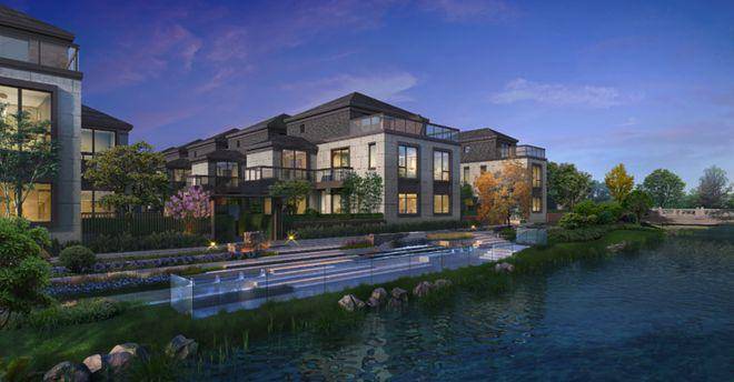 【上实·和风院】建筑外观是新中式格调,以黑色面瓦为黛顶,整体线条简洁明快。