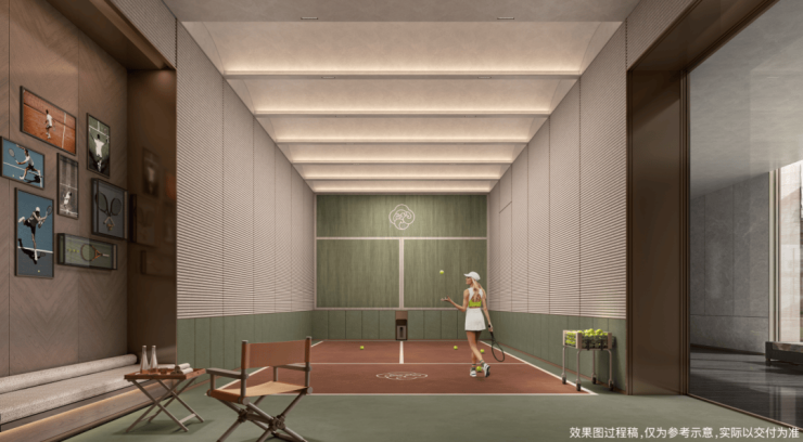 “双会所”设计是项目的另一大亮点。洋房和高层组团内的会所面积就近2200㎡,涵盖恒温泳池、健身房、私宴厅和网球训练馆等多样化功能。