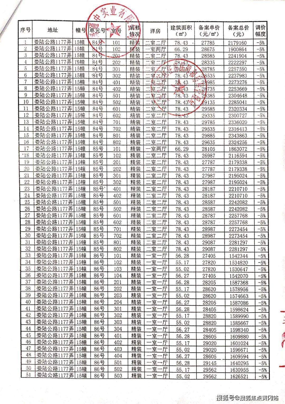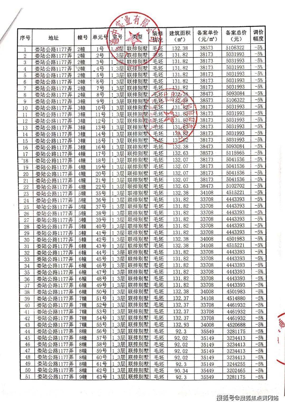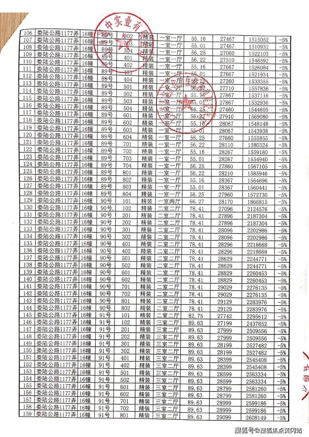 最后附上一房一价表: