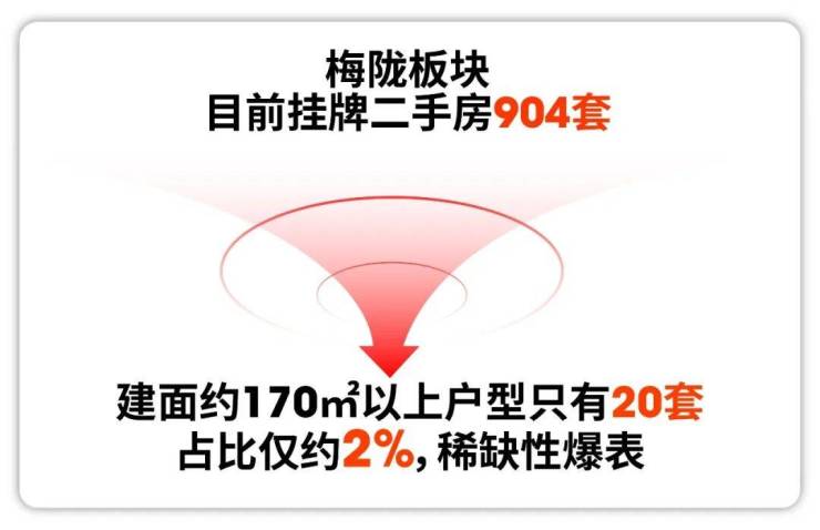 同步我又看了梅陇的挂牌情况, 板块内904套挂牌,170㎡以上的也只有20套,占比还是2%!