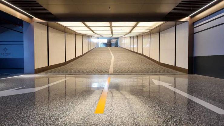 行车道地面采用精磨石面层,坚韧耐磨。