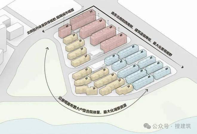 场地南侧紧邻东沙湖水岸公园,西侧贴临社区绿地,优秀的景观资源与规划的低密属性为项目奠定了稀缺的物理基础——更宽阔的自然接触面,更从容的生活尺度。规划将住宅以行列组团布局,通过建筑西南低、东北高的差异化排布,最大化利用湖景资源,确保每户均享有良好景观视野。