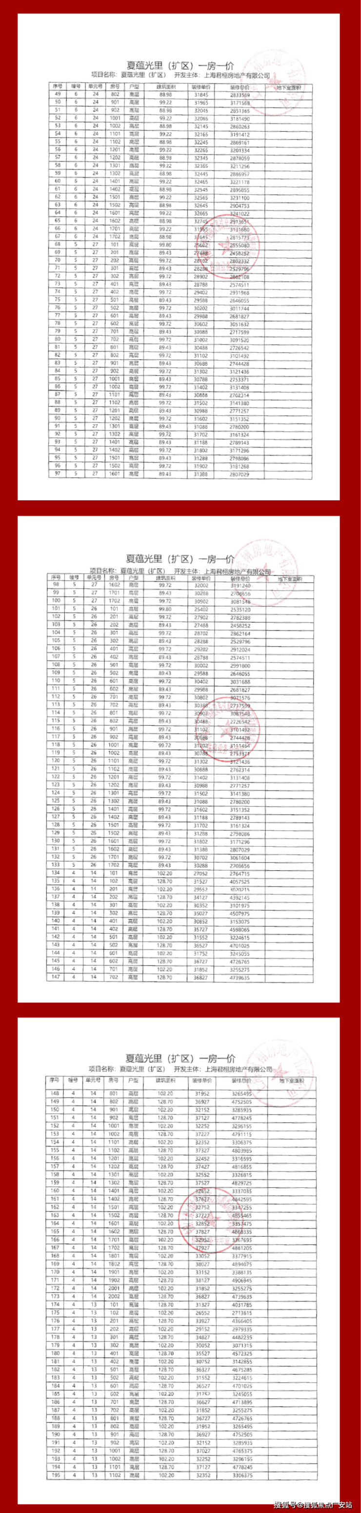 项目一房一价表