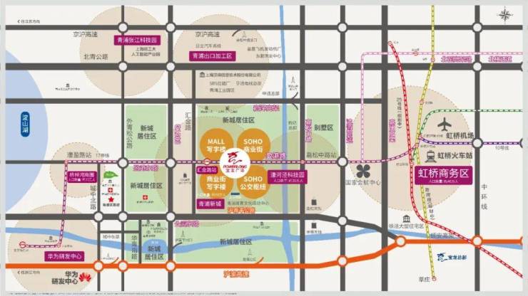 【宝龙虹桥SOHO】位于青浦宝龙广场之上,地铁17号线直达, 约35万㎡区域最大规模综合体,配套甲级办公、购物中心、商业街、酒店、公寓等,工作生活娱乐一体化。
