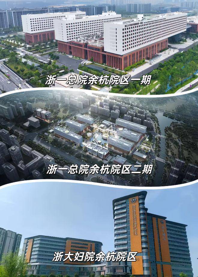 浙一总院余杭院区(直线距离约2.4公里),浙大附属妇产科医院余杭院区,余杭第二人民医院等。