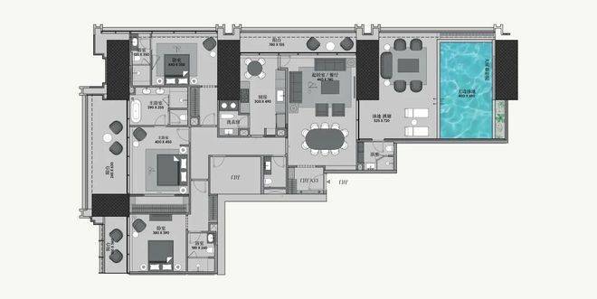 户型简介:4卧 + 7浴 + 保姆 + 学习 + 无边泳池 + 健身房 + 4车位