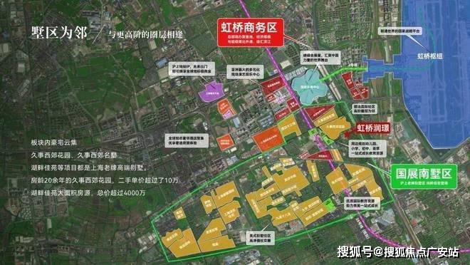 滨水贵脉虹桥极致静谧:接壤国展墅区臻贵的低密氛围,天赋不可再生的双水岸环绕,绿境底色,大虹桥主城区住宅用地占比不足5%,主城唯此低密