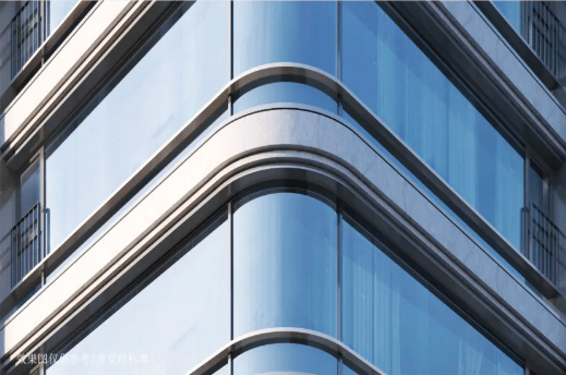 顶部鎏金塔冠,曲面拉伸铝网包裹古铜质感金属铝板,革新板块城市界面,也形成独具观赏性、标志性的地标重塑上海天际线轮廓。