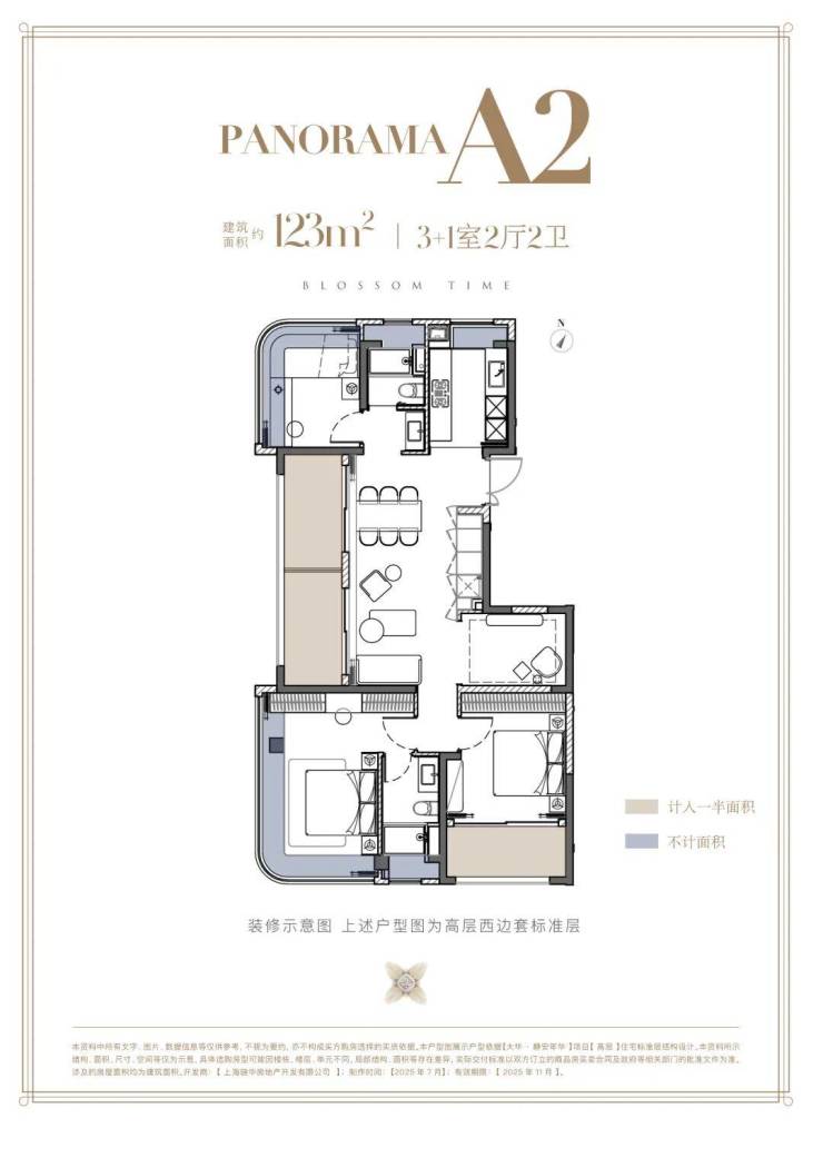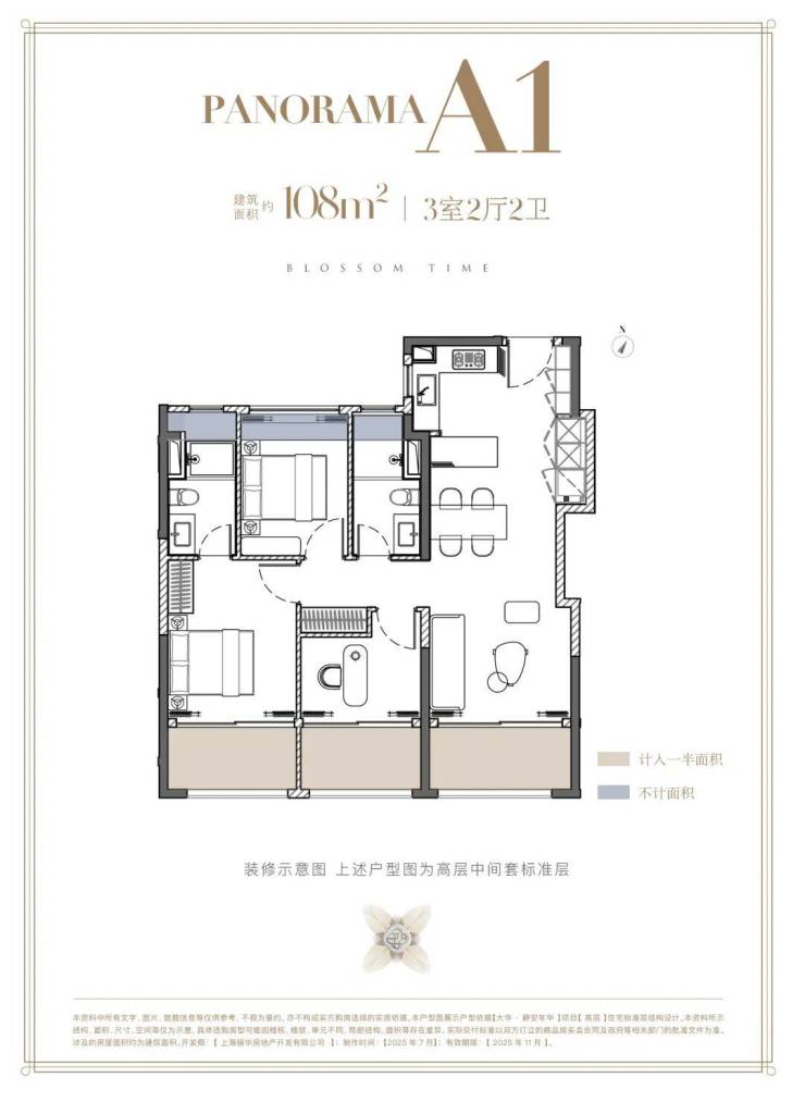 高层建面约108㎡和123㎡两种户型均采用这一突破性设计,较此前和樾长宁120㎡双阳台设计实现质的提升。