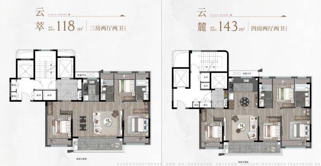 除了低密洋房,项目同步规划建面约118㎡、143㎡小高层产品,以多元户型适配不同家庭结构需求。