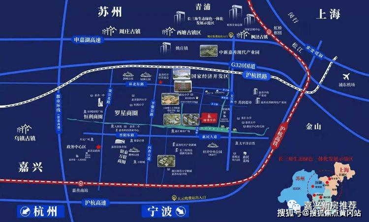 1区位优势:长三角一体化国家战略,嘉善带来新机遇;经开区强大产业支撑,为房屋升值保驾护航;距离银泰、万联城核心区域约3.8公里,尽享主城繁华。