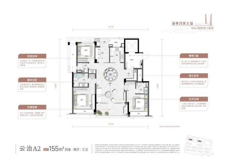 除却三大越级领先的产品力,望云庭室内空间打造同样亮眼,此次将同步开启的建面约155㎡大平层样板间,有着类一梯一户、高利用率、无遮挡采光、准三套房等诸多优点,在精装标准上,智能家居、全屋地暖等配置一个也不少,丝毫不逊千万级产品。