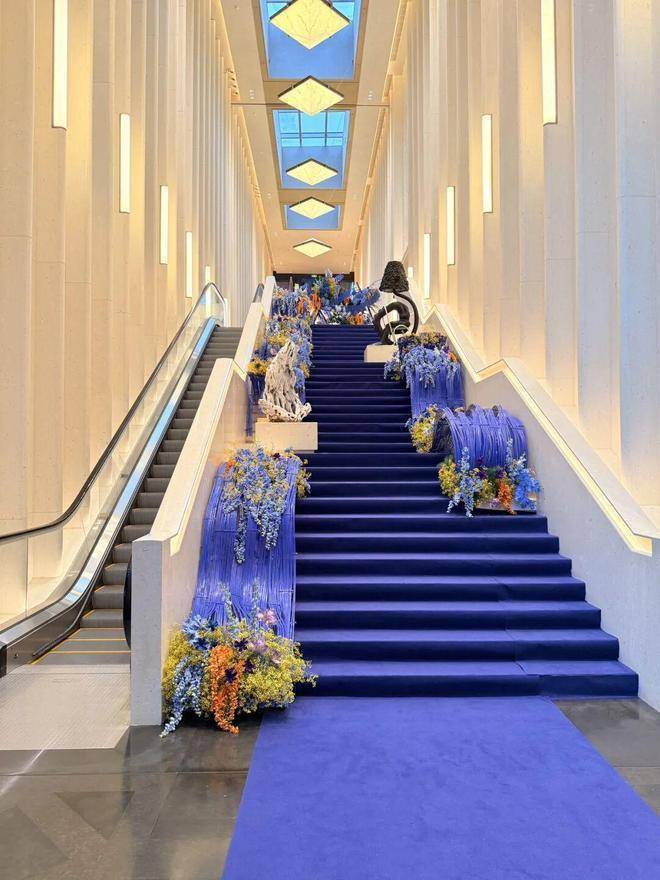 从海派入户旋转门推门而入,看到的是约13-15米的挑高大堂。三层艺术阶梯的进阶之感,层层递进,犹如登山之“径”,气派恢宏。