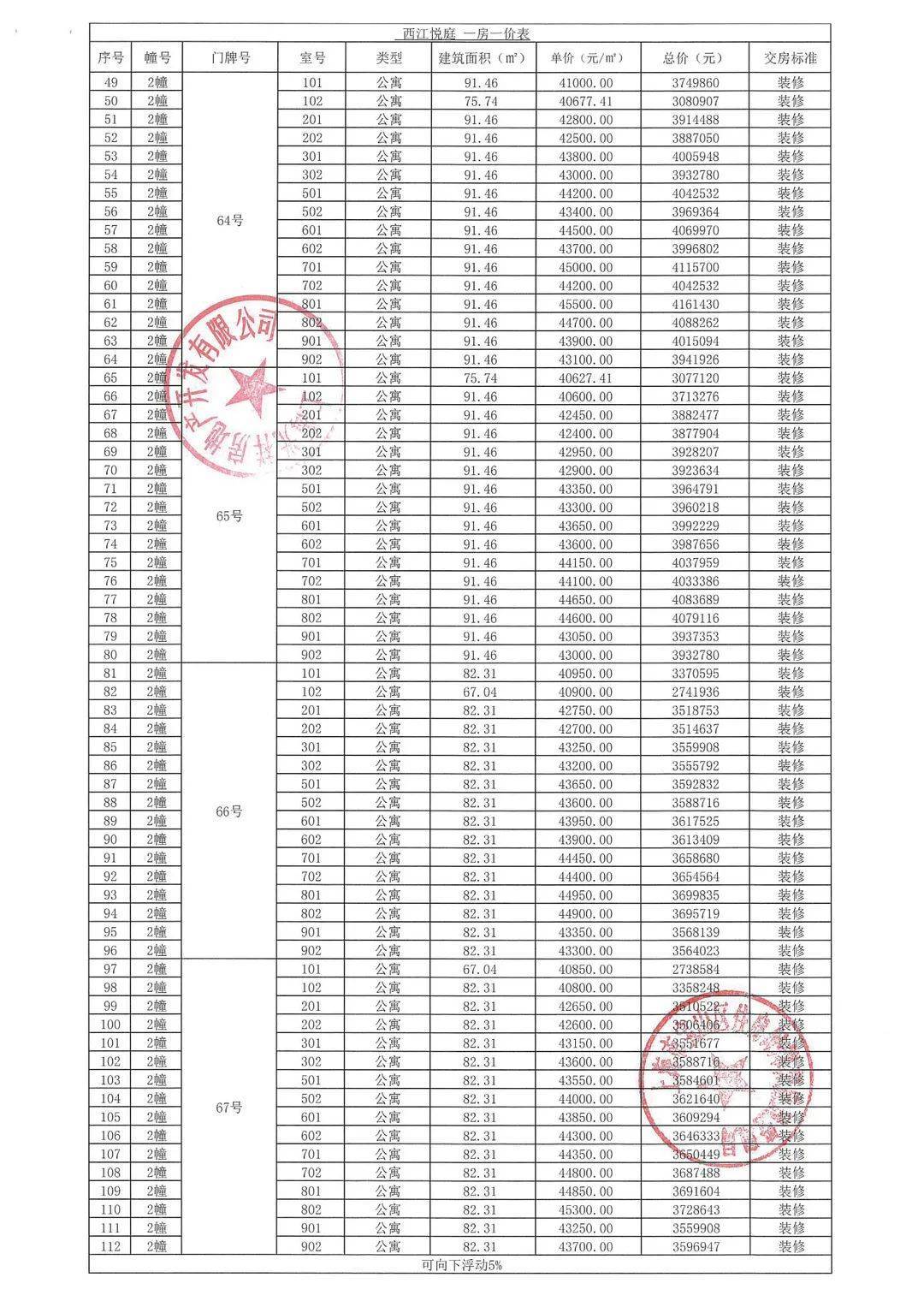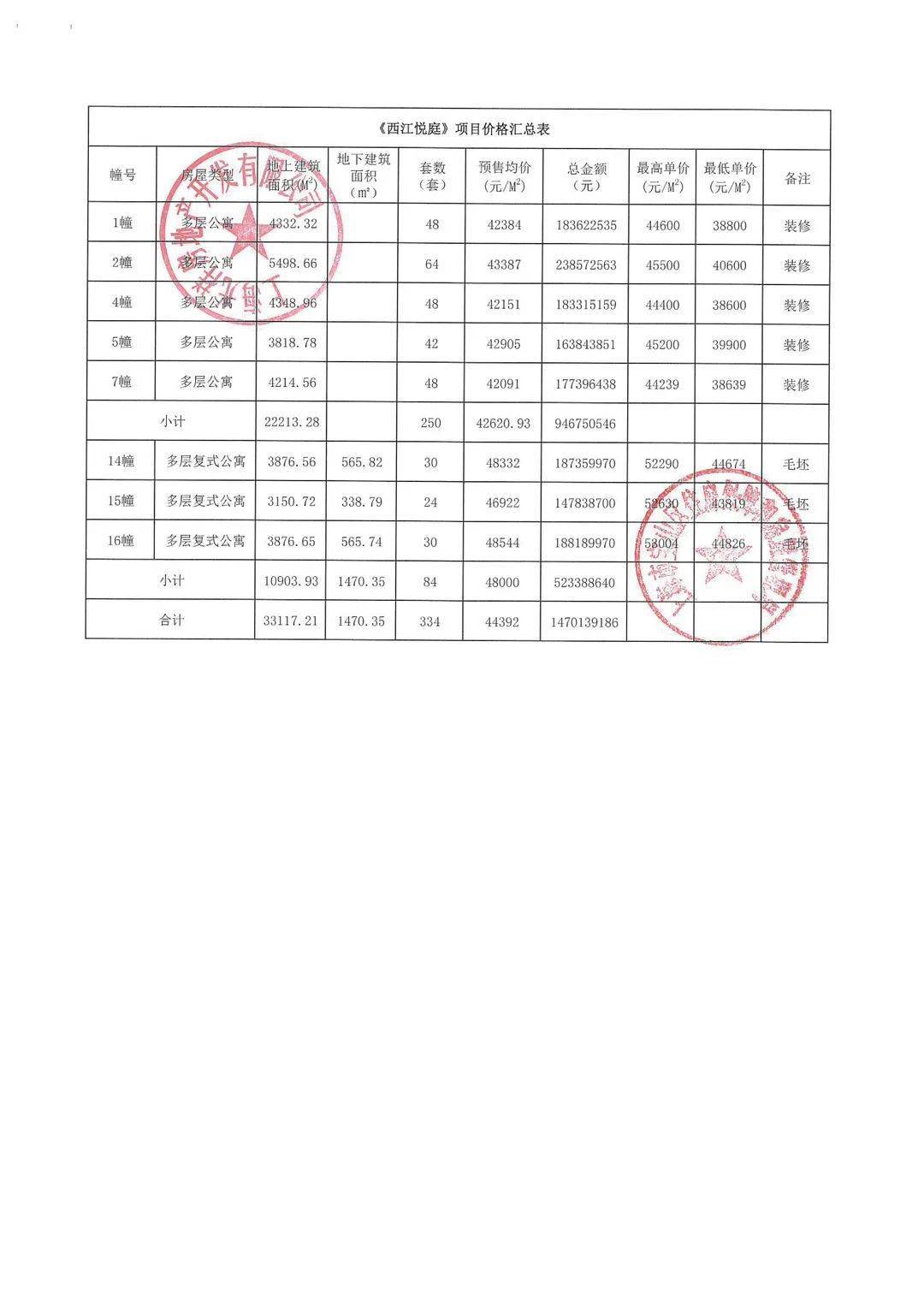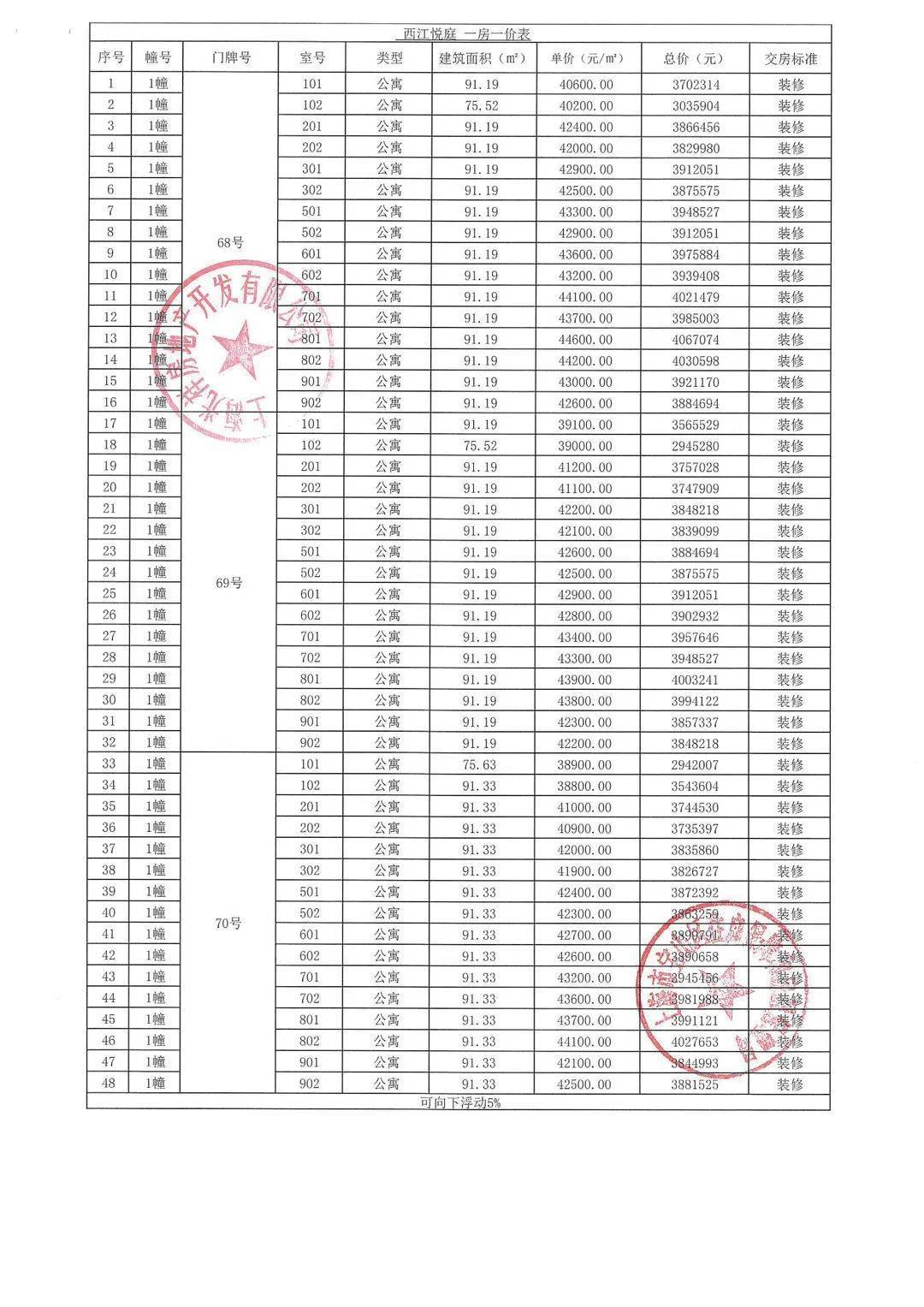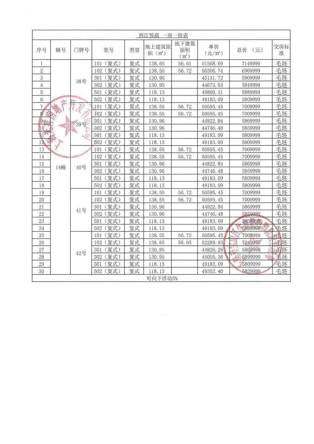 认购细则&一房一价表公示