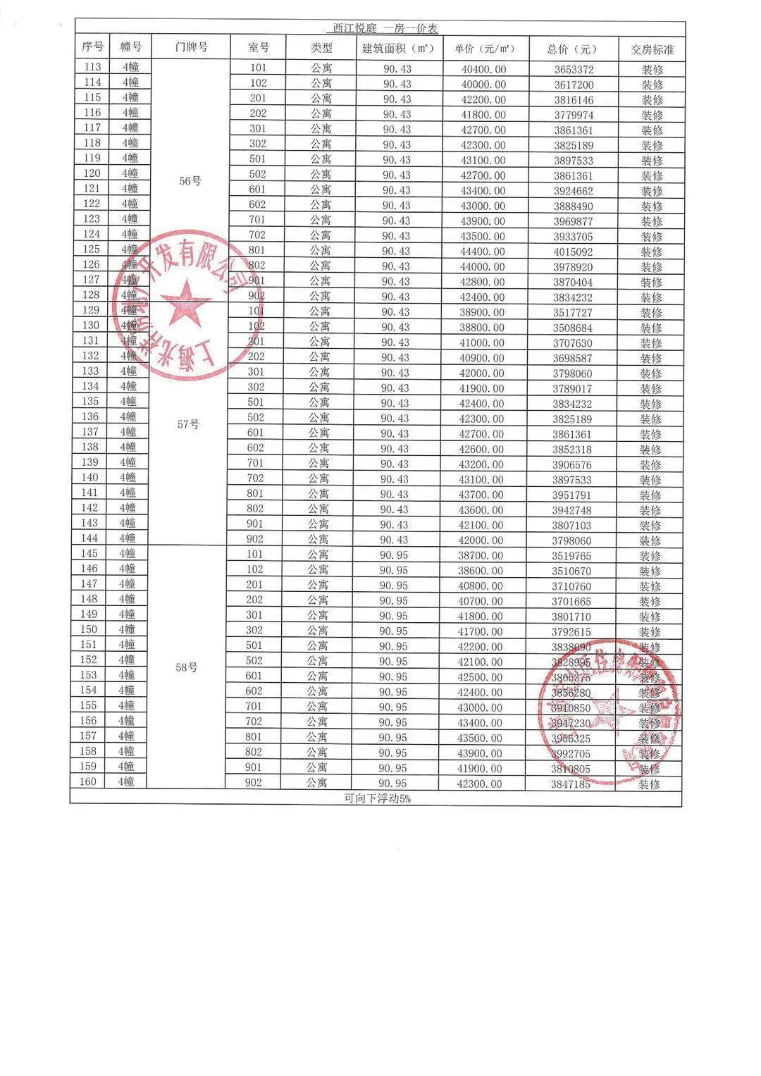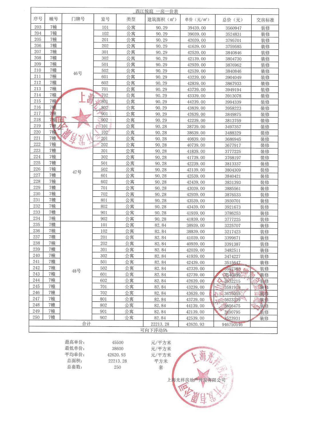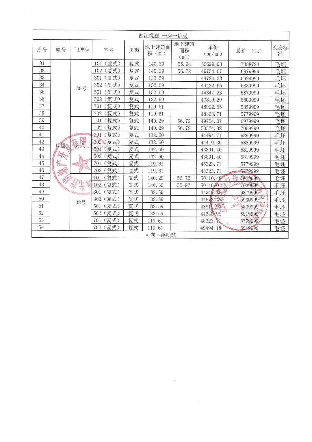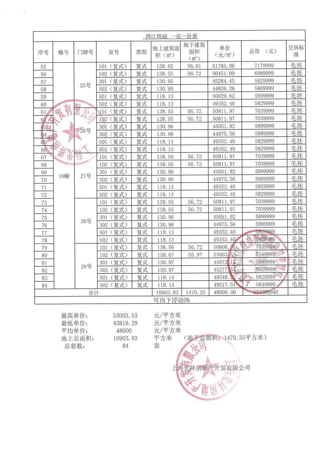 认购细则&一房一价表公示