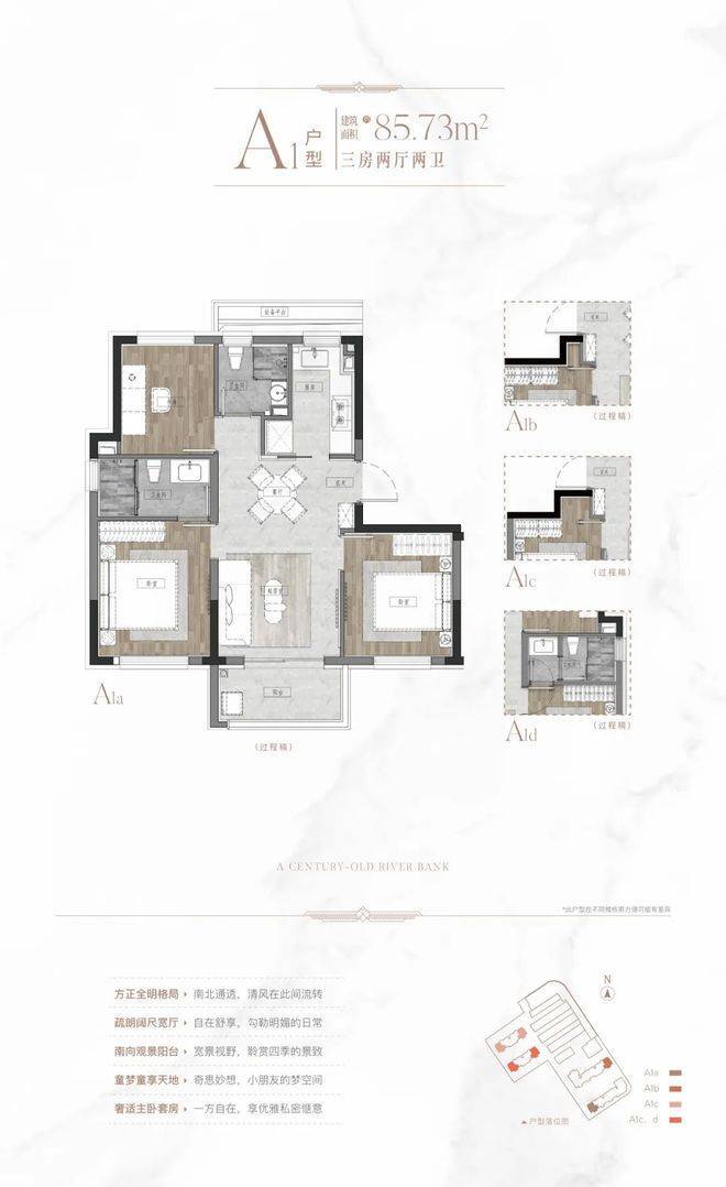 洋房:建面72-85㎡2-3房,总价850-1000万,精装交付(日立中央空调、博世地暖等)