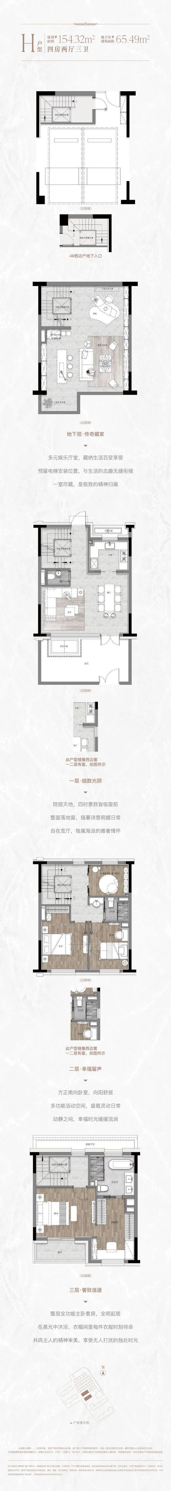 风貌别墅:建面131-154㎡,地上3层+地下1层,均价18万/㎡,附赠面积80+㎡。