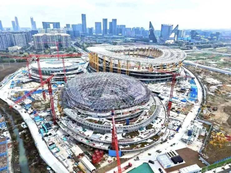 余杭国际体育中心,6万座专业足球场+1.8万座体育馆+游泳馆,预计2026年主体基本完工,2027年投入使用;