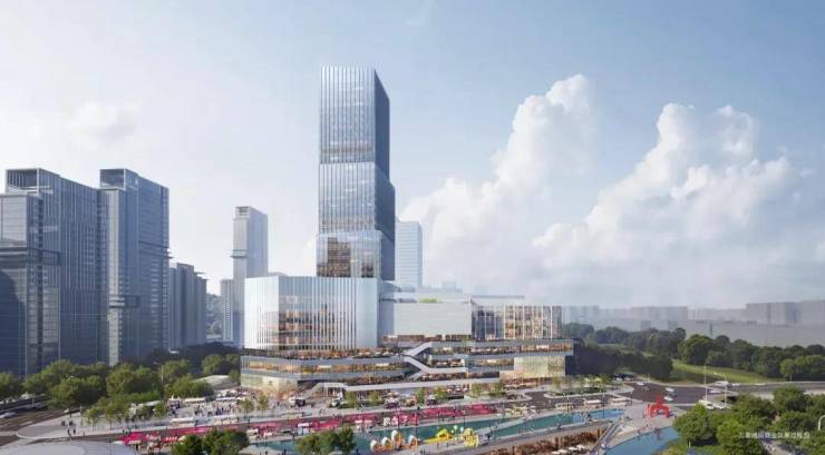 国际数字商务区双子塔,规划高度约350米,涵盖商务+酒店+商业,规划方案待落地
