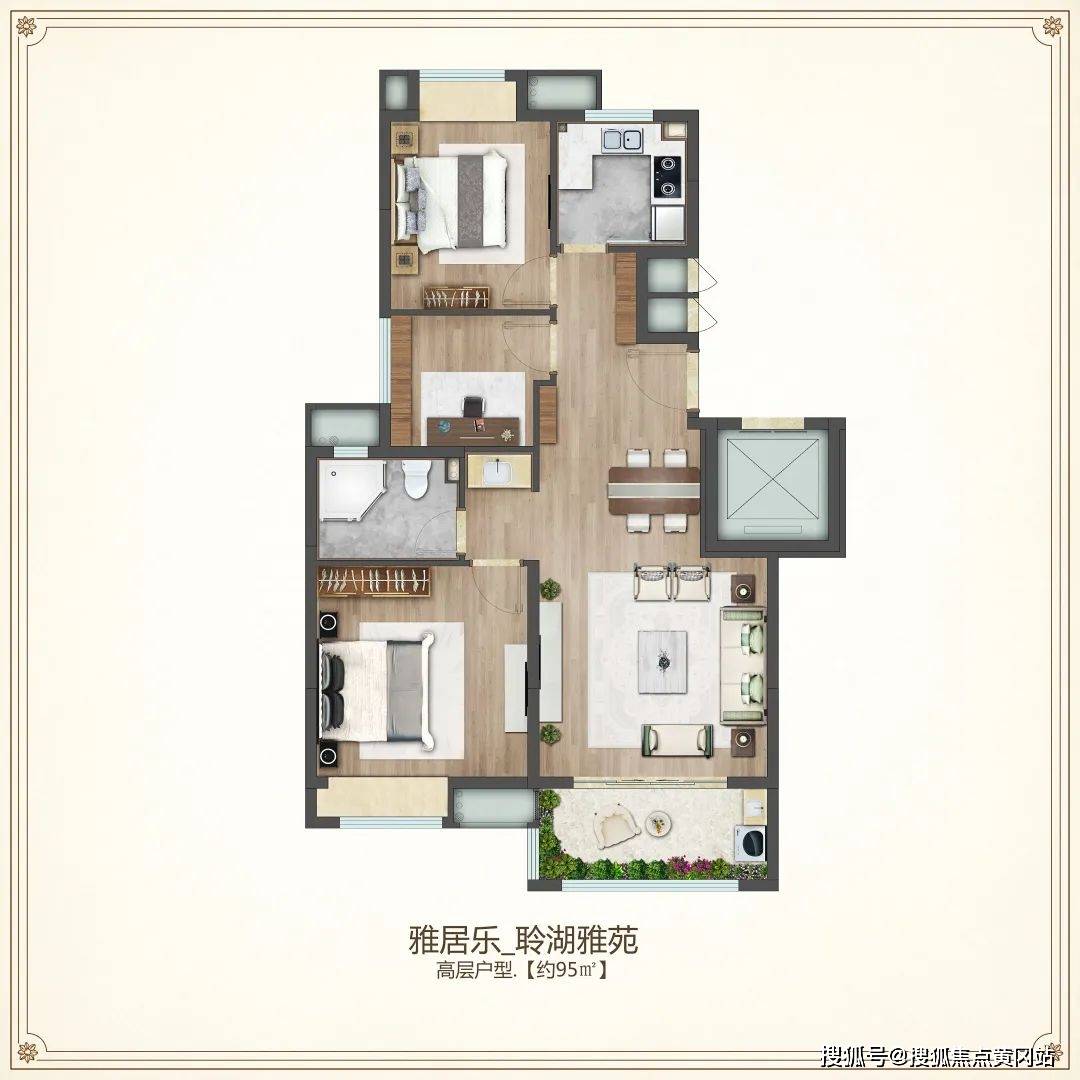 95㎡满足3房设计,中间的小卧室也可以改成书房使用,居住功能与生活质感兼具