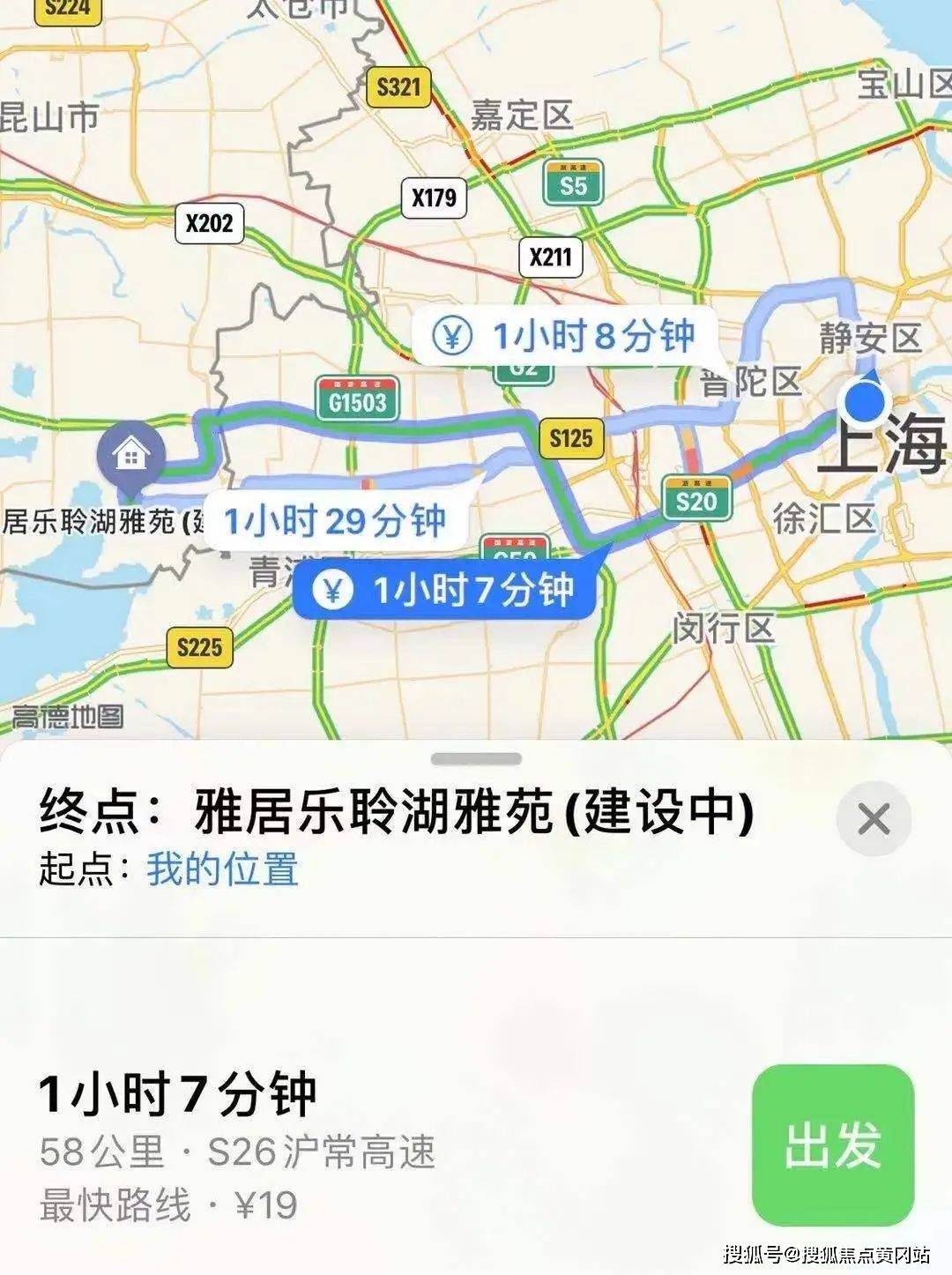 项目究竟怎么样,还是要实地去看一看。于是,我们从南京西路驱车出发,延安高架——沈海高速——沪常高速千灯出口,一路基本绿灯,约1小时7分钟到达售楼处。