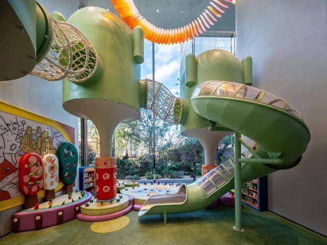 比如大一点孩子,可能更注重肢体协调能力、探索的趣味、空间的互动性和趣味性,那绿城就围绕这点,做了五个树屋、滑滑梯等。