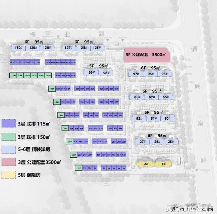 总占地:约3.4万㎡,总建面约3.7万㎡,容积率仅1.1(洞泾镇最低),绿化率35%,建筑密度25%,规划7栋5-6层电梯洋房及23栋3层联排别墅,总户数325户,车位比1:1.3(人车分流).