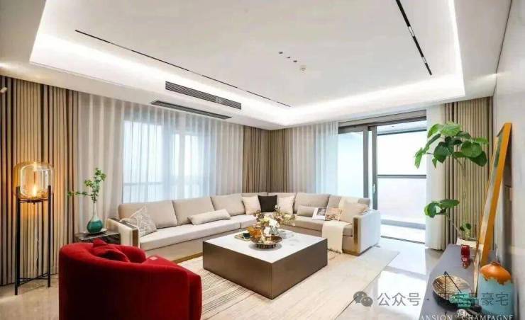 此户型在3#边套,也是样板间户型,正南向看老静安南京西路城市景观,东南向可以看到陆家嘴及苏州河景观,相当完美!主卧套房设计了双开间都朝南,尊崇感更强,双面通风客厅采光效果不错