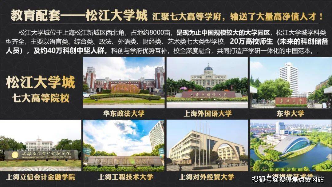 教育资源方面:包玉刚实验学校、上海赫德双语学校、上海西外外国语学校、阿德科特学校、爱菊小学(园区规划)、全国较大的松江大学城等;