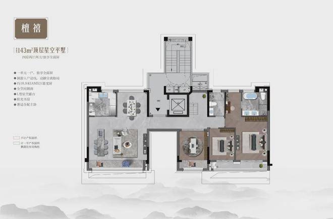 顶层最大赠送约85㎡+露台,自由发挥想象,可以用天然石材或桧木打造日式私汤汤屋,也可设计镜面泳池,亦或预留空间,做鸡尾酒会等定制主题晚宴,搭配投影幕布播放艺术电影……
