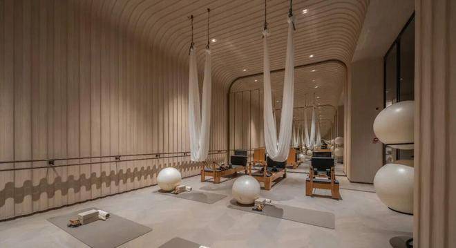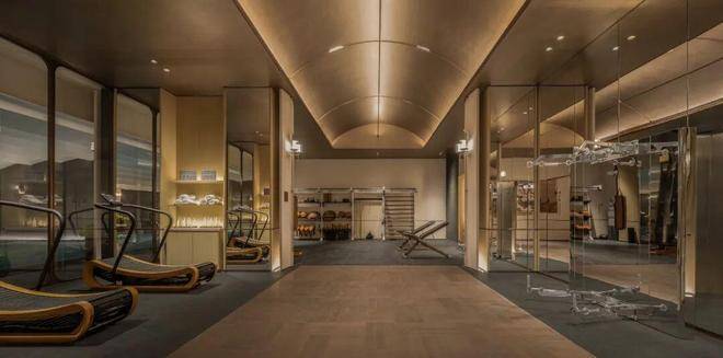 功能完备之外,是设施配置的健全奢华。健身房内,与上海顶级豪宅嘉佰道同款的全套WaterRower高奢健身器材;空中瑜伽室内,专业的悬吊训练系统(TRX)和抗冲击地垫;泳池区,单独配置了卫生间与更衣室;面积近100㎡商务私宴厅,融合了会客、茶艺、棋牌、宴客、五星级酒店专业后厨等各功能。