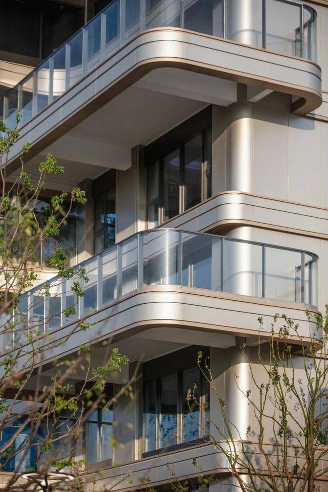 在建筑设计上,立面铝板干挂为主,流线型外观设计,使每栋建筑如同生长于湖畔的艺术品,与湖光山色融为一体。
