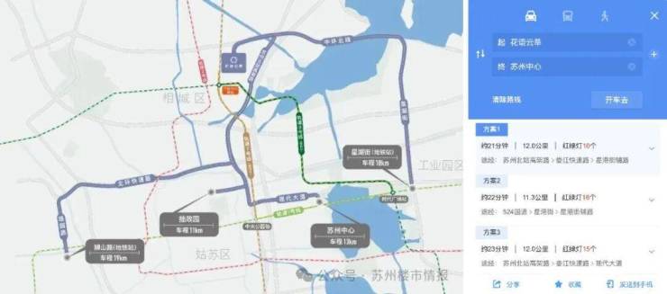 更重要的是,从花语云萃出发,仅需5站地铁即达园区!自驾出行,最短仅需约11.3KM车程即可抵达苏州中心(数据及路线截图均源自高德地图)。相城的价格、园区的生活,这笔账,谁算谁明白!