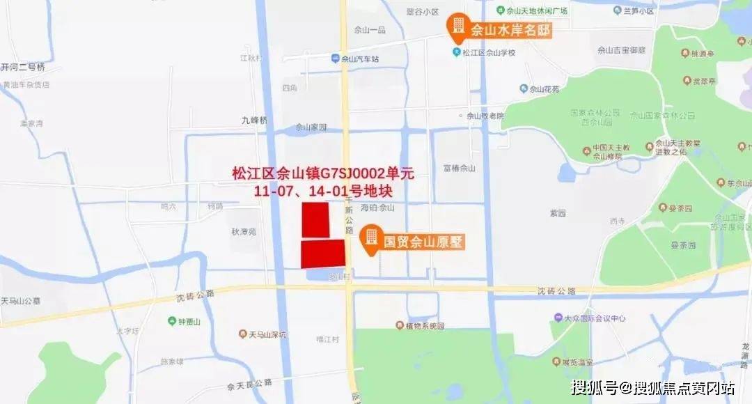 佘山望与上海辰山植物园仅隔一条沈砖公路,距离佘山国家森林公园直线距离约1.6公里。地块内南侧是油墩港水域相通的小型湖泊,环境非常好。