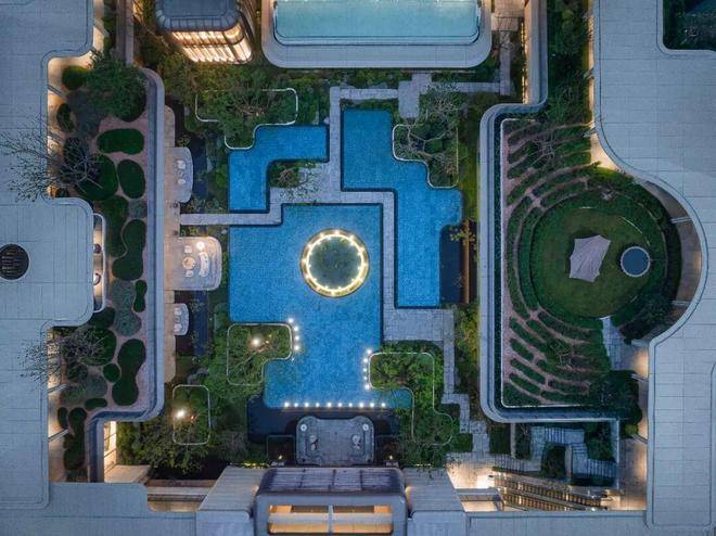 设计师用精心挑选的植物为背景,将水景掩映于森林之中;并在局部采用参与性戏水池结合下沉会客厅的设计;在这里,你可以林下沙发放空冥想,下沉会客厅促膝长谈,临水步道信步闲庭。