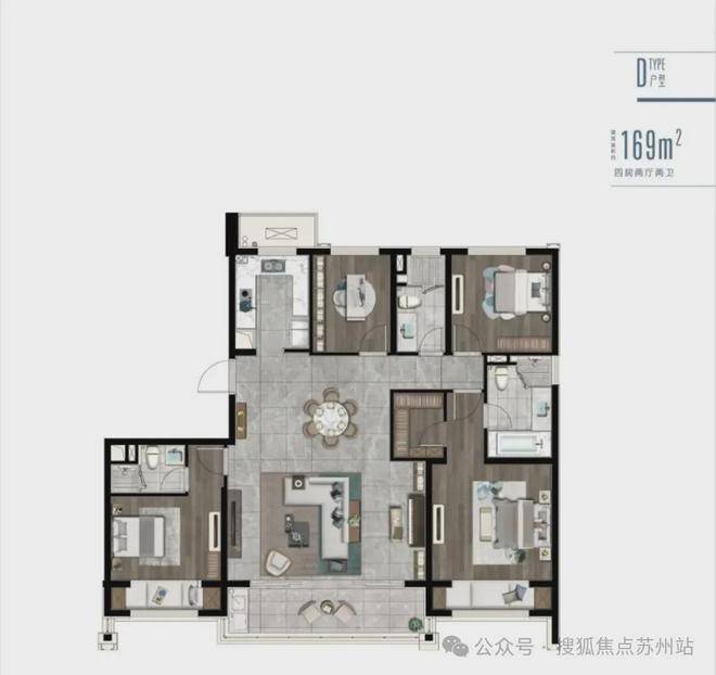 方正户型:面积0浪费,全明通透,3+1开间朝南