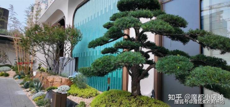中央景观轴线超300米现场看山水景观很立体,全冠移植了乌桕树,百年罗汉松,红枫,铁冬青等昂贵树种,层次感确实很丰富.